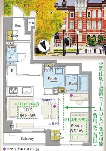 ◇間仕切り設置で1LDKに変更可能(費用は売主負担)