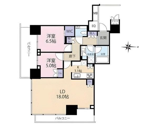 専有面積 75.29u 間取り 2LDK (洋室6.5/洋室5)