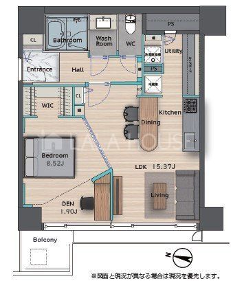 専有面積 58.67u 間取り 1SLDK (LDK15.3/洋室8.5/S1.9)
