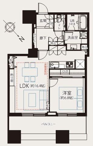 専有面積 | 57.71u | 間取り | 1LDK (LDK16.4/洋室6.8) | ||