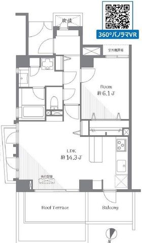 専有面積 | 50.03u | 間取り | 1LDK (LDK14.3/洋室6.1) | ||