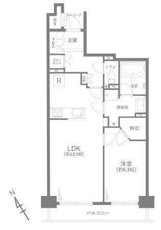 専有面積 | 51.38u | 間取り | 1LDK (LDK13.5/洋室6.3) | ||
