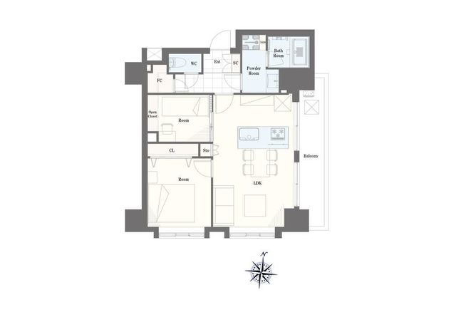 専有面積 | 51.72u | 間取り | 1SLDK (LDK/洋室/洋室) | ||