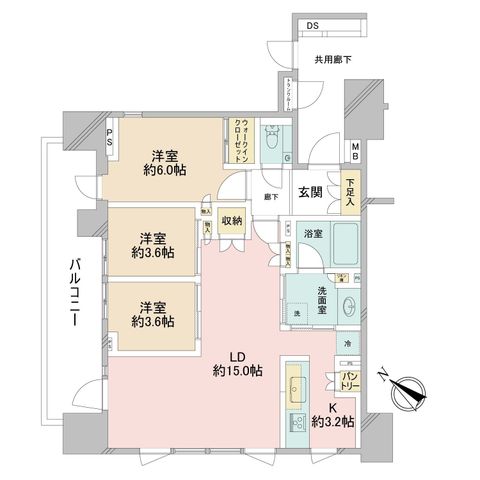 専有面積 68.5u 間取り 3LDK (洋室6/洋室3.6/洋室3.6/LDK18.2)