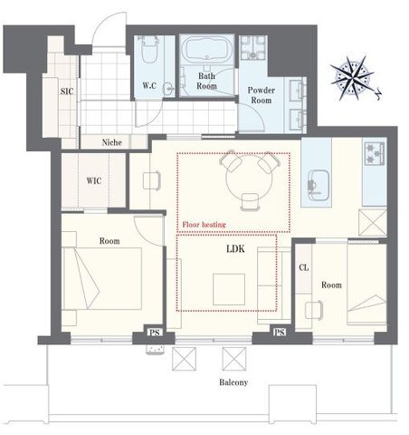 専有面積 | 65.22u | 間取り | 2LDK (LDK/洋室/洋室) | ||