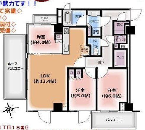 専有面積 | 70u | 間取り | 3LDK (LDK13.4/洋室6/洋室5/洋室4) | ||