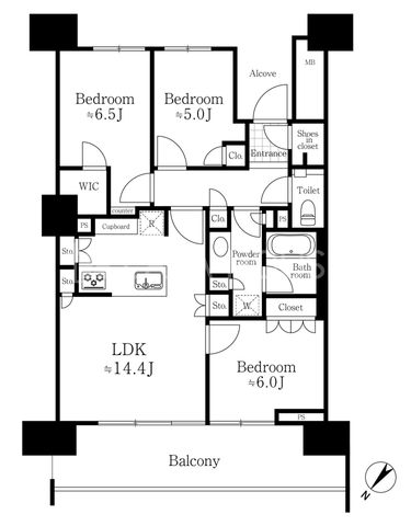 専有面積 | 75.8u | 間取り | 3LDK (LDK14.4/洋室6.5/洋室6/洋室5) | ||