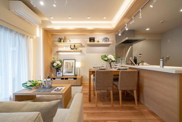 | 特徴 | フローリング/給湯器/システムキッチン/カウンターキッチン/追い焚き/シャワー/バス・トイレ別/室内洗濯機置場/エアコン/冷房/コンロ一口/コンロ二口/バルコニー/エレベーター/オートロック/宅配ボックス |