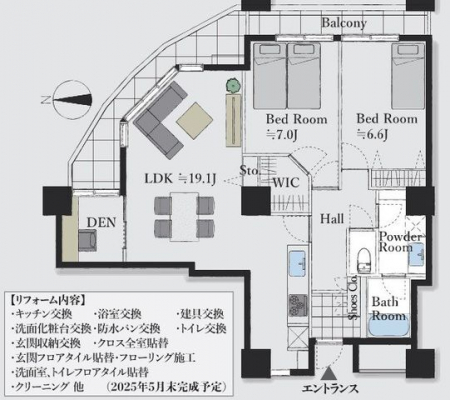 専有面積 | 79.77u | 間取り | 2SLDK (LDK19.1/洋室7/洋室6.6) | ||