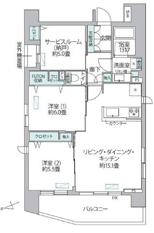 専有面積 | 70.01u | 間取り | 2SLDK (LDK15.1/洋室6/洋室5.5/S5) | ||