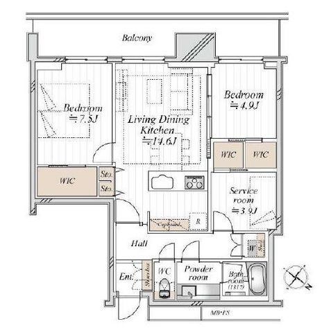 専有面積 | 74.91u | 間取り | 2SLDK (LDK14.6/LDK7.5/和室4.9/S3.9) | ||