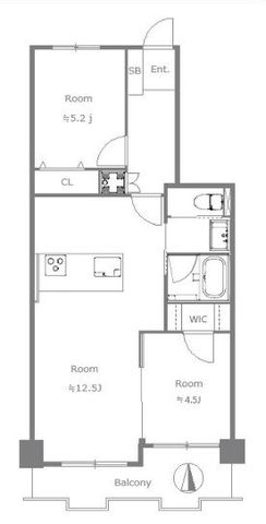 専有面積 | 55.18u | 間取り | 2LDK (LDK12.5/洋室5.2/洋室4.5) | ||