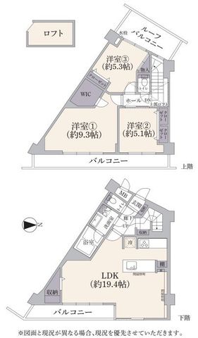 専有面積 | 89.34u | 間取り | 3LDK (LDK19.4/洋室9.3/洋室5.1/洋室5.3) | ||