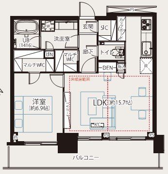 専有面積 | 55.64u | 間取り | 1LDK (LDK15.7/洋室6.9) | ||