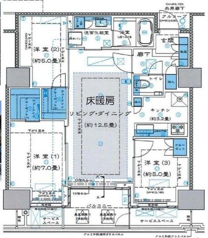 専有面積 75.77u 間取り 3LDK (LDK15.7/洋室7/洋室5/洋室5)