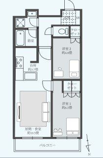 専有面積 | 60u | 間取り | 2LDK (-) | ||