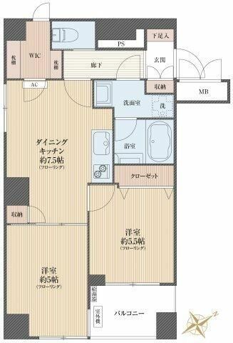 専有面積 | 49.9u | 間取り | 2DK (DK7.5/洋室5.5/洋室5) | ||