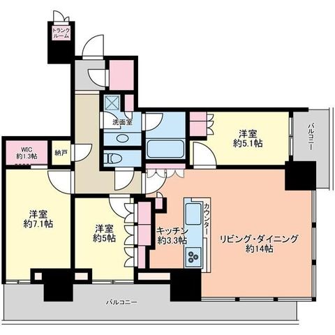 専有面積 | 83.45u | 間取り | 3LDK (LDK14/洋室7.1/洋室5/洋室5.1) | ||