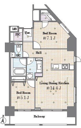 専有面積 | 64.64u | 間取り | 2LDK (LDK14.4/洋室7.1/洋室5.1) | ||