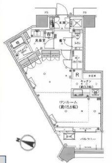 専有面積 49.95u 間取り 1K (K15.6)