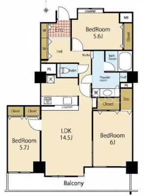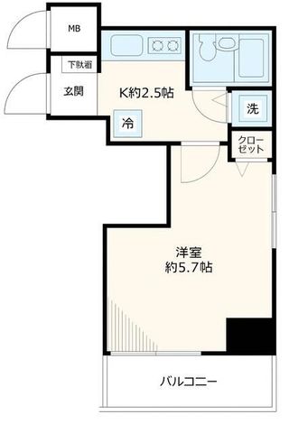 専有面積 | 21.33u | 間取り | 1K (洋室5.7) | ||