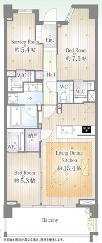 専有面積 | 78.1u | 間取り | 2SLDK (LDK15.4/洋室7.5/洋室5.3/S5.4) | ||