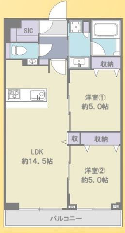 専有面積 | 62.42u | 間取り | 2LDK (LDK14.5/洋室5/洋室5) | ||