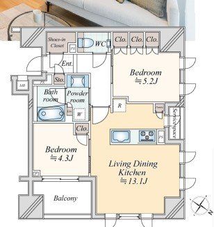 専有面積 54.99u 間取り 2LDK (-)
