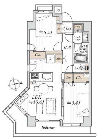 専有面積 | 50.35u | 間取り | 2LDK (LDK10.6/洋室5.4/洋室5.4) | ||