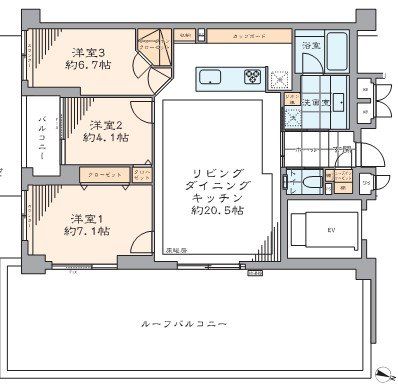 【広々としたルーフバルコニー完備】