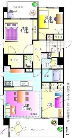 専有面積 | 72.21u | 間取り | 3LDK (LDK13.5/洋室7.3/洋室5.2/洋室4.5) | ||