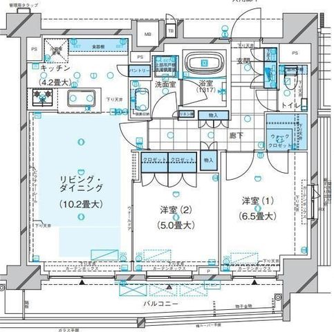 専有面積 61.56u 間取り 2LDK (LDK14.4/洋室5/洋室6.5)
