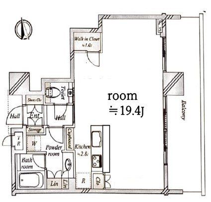 専有面積 52u 間取り 1R (LD19.4)